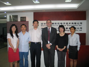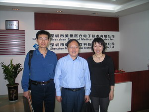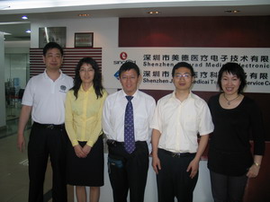 會議期間,前來公司參觀指導的嘉賓絡繹不絕,主要是重要客戶以及國內外幾家磁共振生產商的代表。作為中國唯一一家生產磁共振配套的專業視頻、音頻產品的廠家,美德公司憑借精專的產品開發能力和優質的服務,在業界享有良好的口碑,除在國內擁有眾多的用戶外,還開始與國內外磁共振廠商在產品配套和訂制特殊需求的產品方面有著良好的合作前景,借此博覽會在深舉辦期間,來公司參觀指導,洽談合作。其中有西門子(中國)有限公司上海分公司的采購部總經理Roland先生和助理謝山曉女士,西門子磁共振有限公司的技術專家們,北京協和醫院、河南省人民醫院、四川大學華西醫院的專家們、北京大學醫學物理專業的包教授、上海卡勒幅公司、浙江嘉恒公司的同道們……,他們一一聽取公司領導的公司現狀和未來的發展策略,參觀工作車間,考察產品質量控制體系,對合作前景充滿信心。