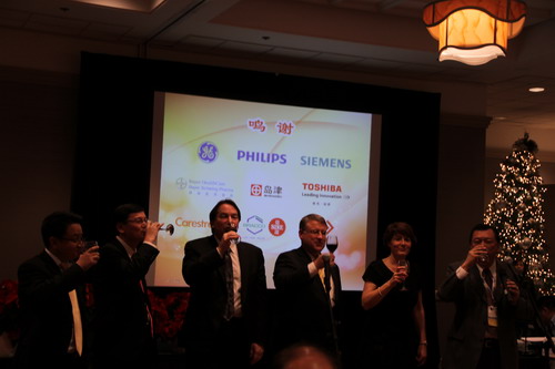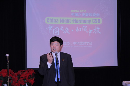學會主任委員郭啟勇教授、候任主任委員馮曉源教授、各位副主任委員,以及GE、西門子、飛利浦、銳柯等公司的中國區(qū)領(lǐng)導悉數(shù)出席,中國之夜共吸引了與會專家、公司代表以及在美華人放射專家等400余人參與。致辭中,郭啟勇院長表示,隨著國家經(jīng)濟的發(fā)展,醫(yī)療需求的增加,中國的醫(yī)療器械市場吸引了世界各地的廣泛關(guān)注。而我們的醫(yī)療科技水平亦不斷攀升發(fā)展,RSNA收錄的中國人論文,從無到有,到今年的176篇,代表著中國影像醫(yī)師在RSNA這個世界學術(shù)舞臺上的話語權(quán)不斷增強,我們已經(jīng)從旁觀者變成輕舞飛揚的表演者。