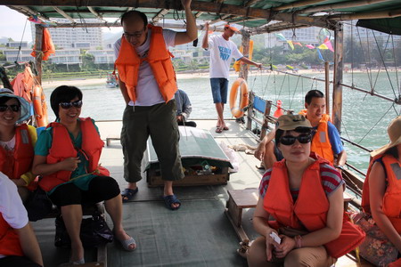 14日用畢早餐,我們分乘兩條漁船出海捕魚,雖然收獲甚微,大家亦興致勃勃。又乘坐快艇環(huán)游海鷗島和其它島嶼,在湛藍的天空下,在碧波蕩漾的海面上,在明媚陽光的親撫下,享受與大自然親近的無窮樂趣,身心的緊張和疲憊得到了徹底的放松和緩解。